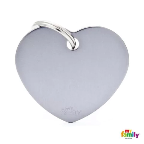 Chapita de aluminio en forma de corazon tamaño grande gris